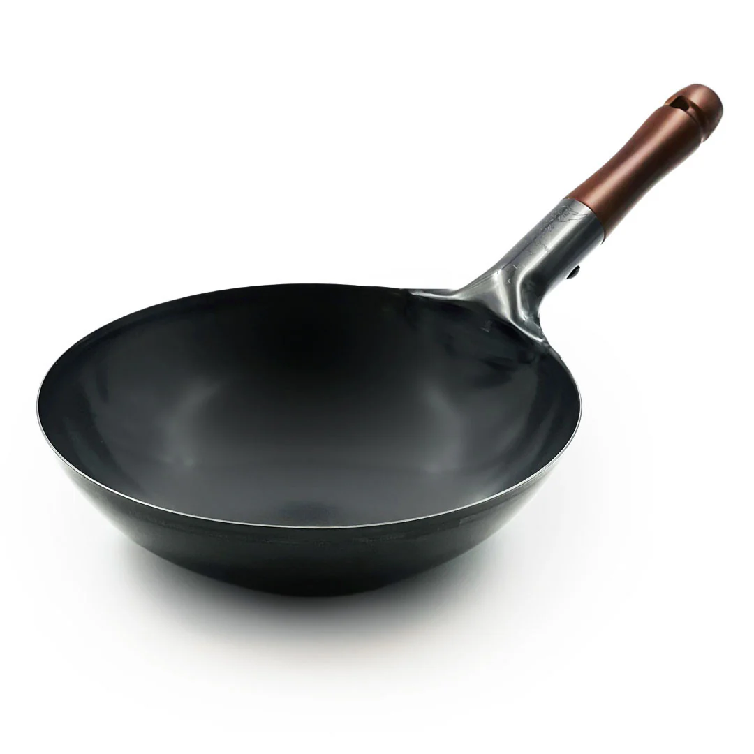 • Flat-Bottomed Woks: Modern kitchens often feature electric or induction stovetops, which require a flat surface for efficient heat transfer. Flat-bottomed carbon steel woks are specifically designed to meet this need, providing stable contact with the heat source while retaining the signature sloped sides for effective stir-frying and tossing.